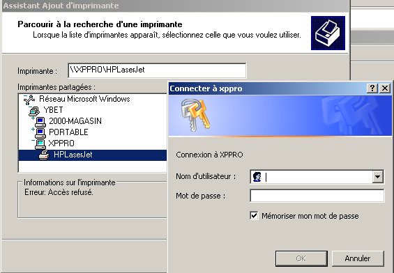 privilèges) mais d'utiliser l'imprimante sur cet ordinateur?".
